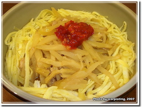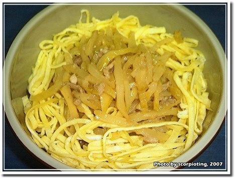 3. 蛋皮切絲備用,作法參照美味可口的蛋皮。