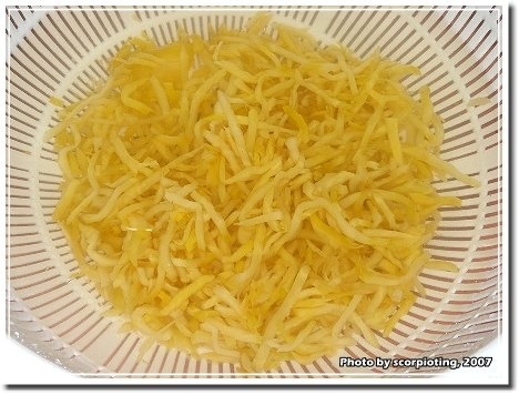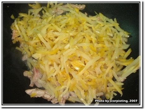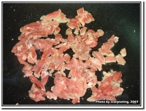 這就是美味的榨菜肉絲了!不過說真的榨菜肉絲要香,真的要用豬油炒,以前我家的媽咪會到菜市場買一小塊豬肥油,切成條狀炸豬油,炸完後的渣渣還可以與榨菜肉絲拌炒,這樣做出來的榨菜肉絲說有多好吃就有多好吃,不過現在自己做,就沒有這麼『搞工』了!