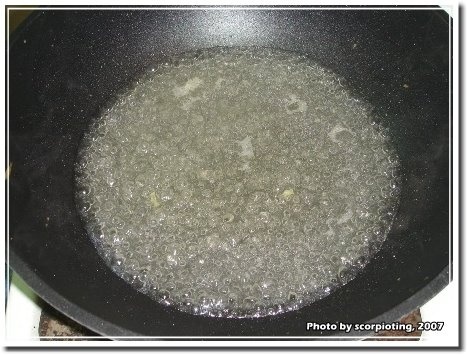 5. 鍋子不用洗,加入少許的油,小火爆香蒜末。